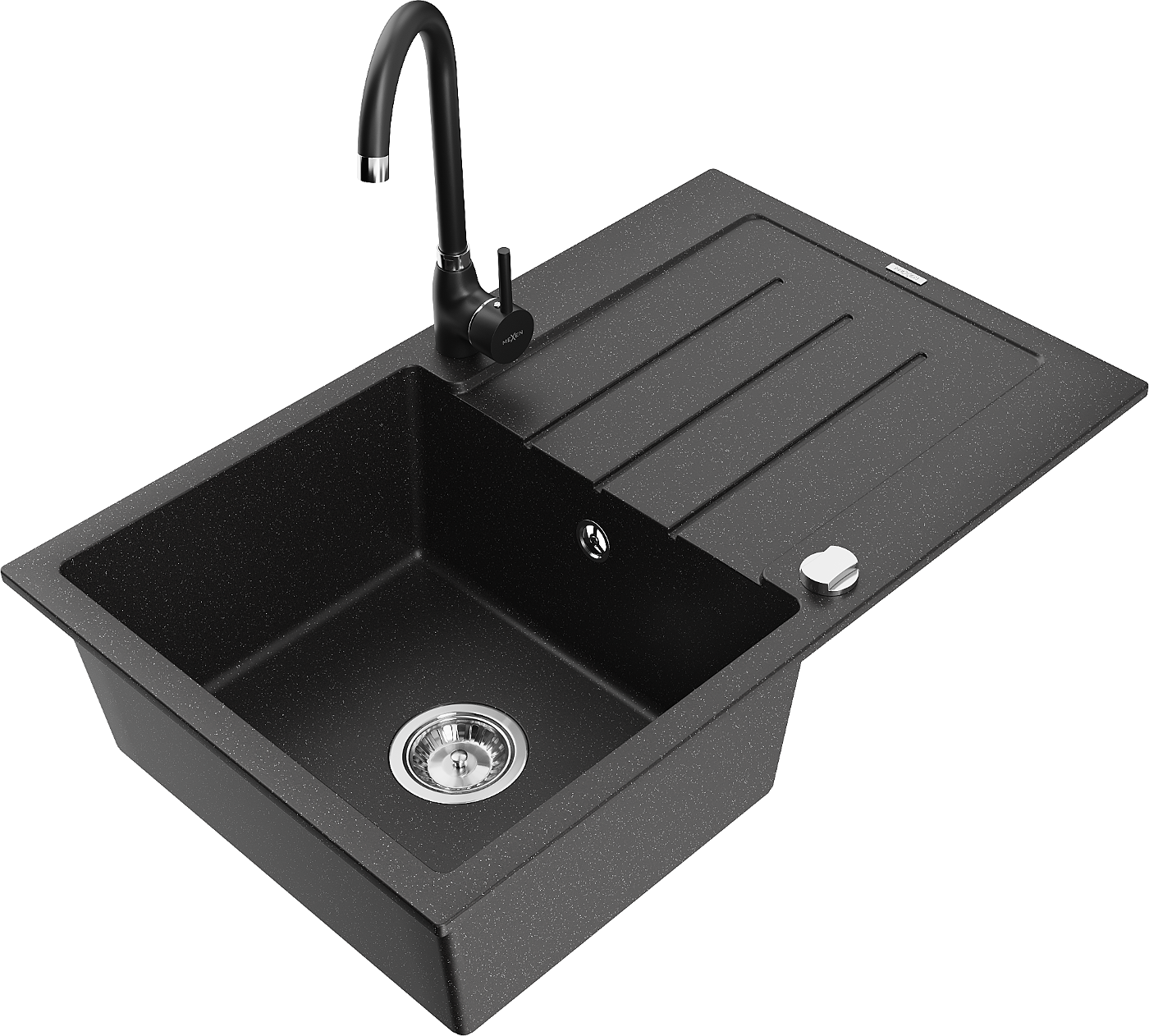 Mexen Bruno chiuvetă din granit 1-cameră cu scurgător și baterie de bucătărie Telma, negru/argintiu - 6513-73-670200-70