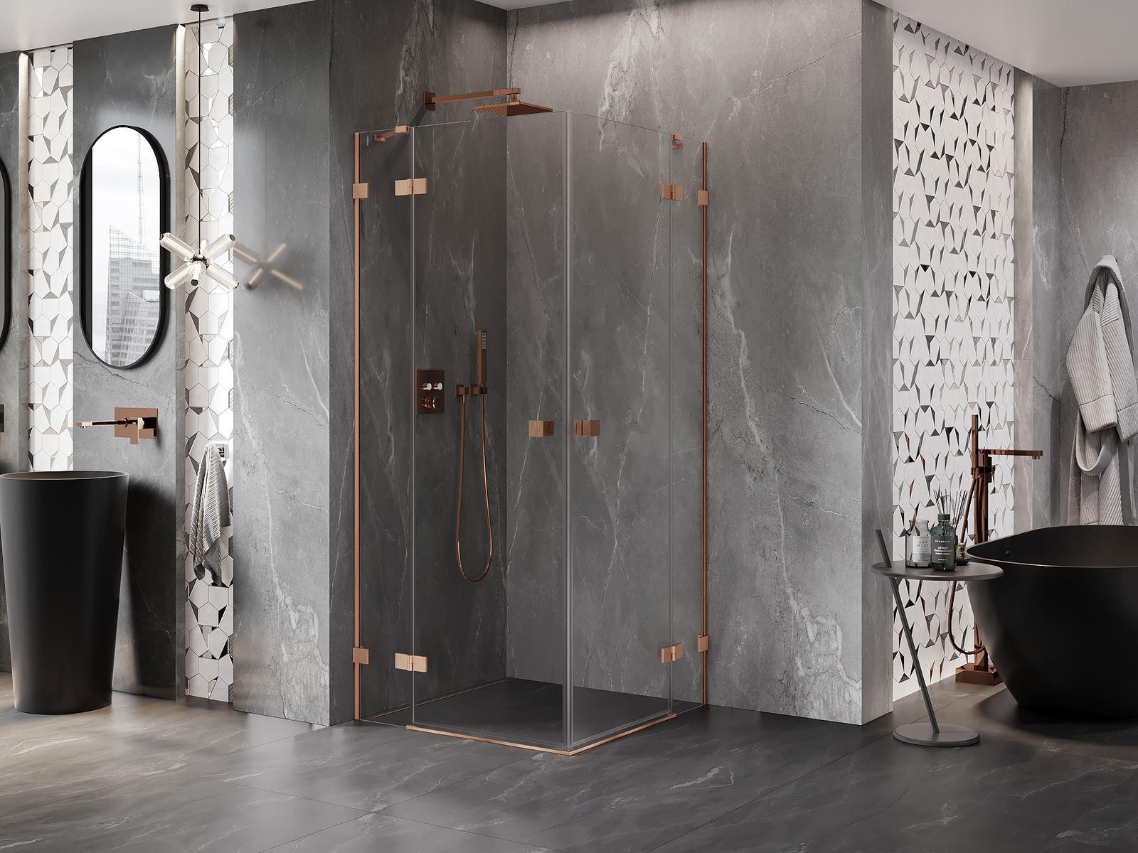 Clemele și balamalele sunt fabricate din alamă foarte durabilă și, în plus, formează o suprafață aliniată cu sticla. Este o alegere excelentă care îmbină eleganța, durabilitatea și designul modern. Datorită acestor soluții, dușul câștigă în estetică și facilitează întreținerea curățeniei.