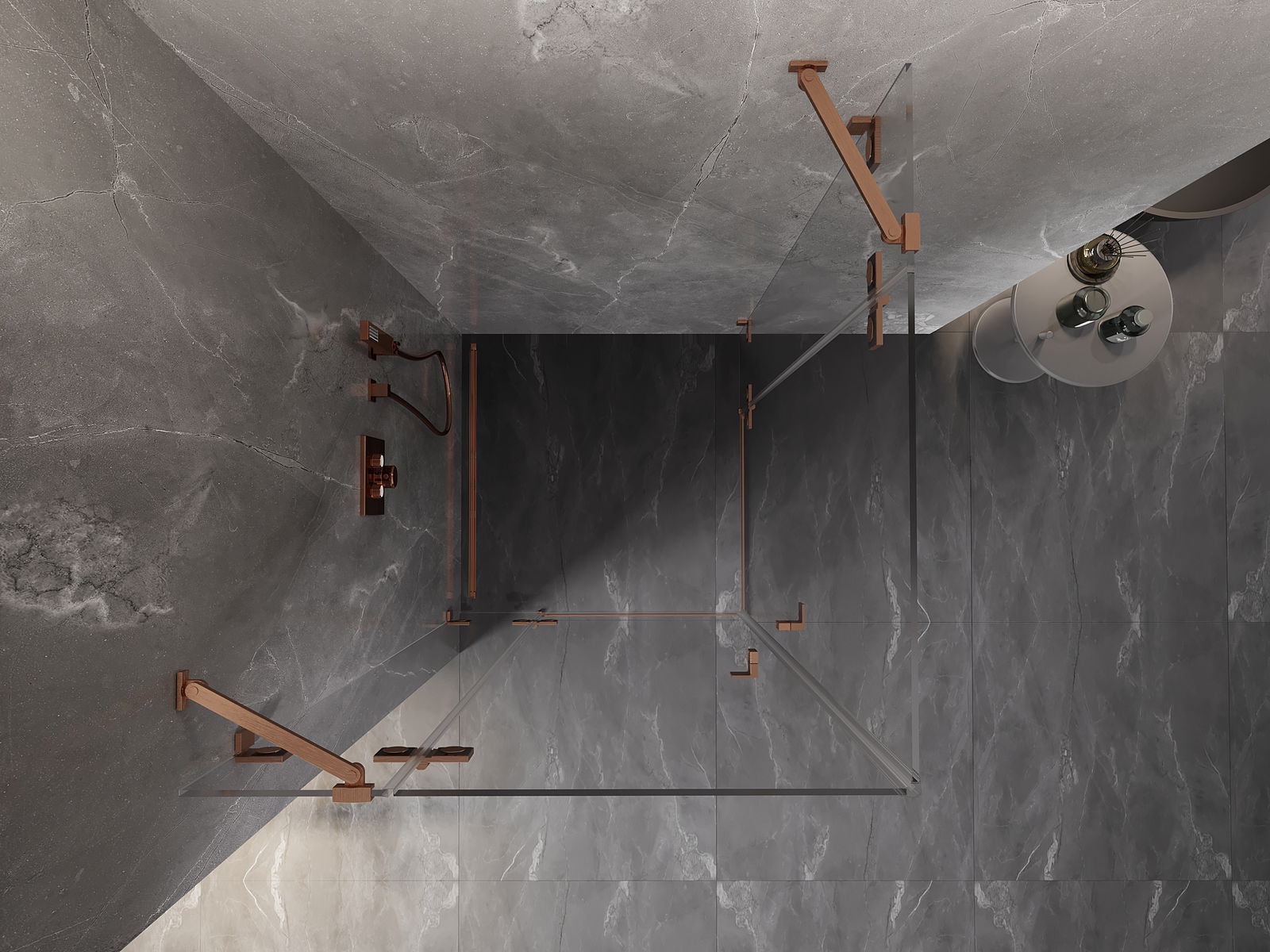 Mexen Lunar Duo cabină de duș cu ușă batantă 90 x 90 cm, transparent, cupru periat - 834-090L-090P-65-00