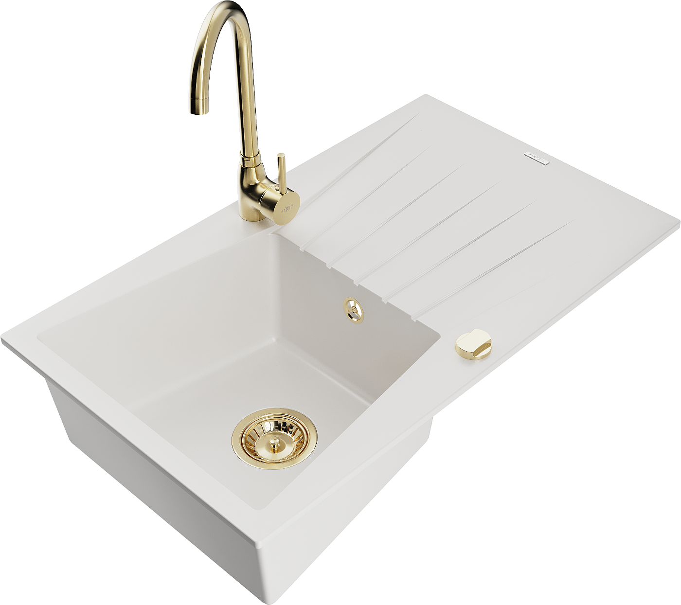 Mexen Cesar chiuvetă de granit cu 1 compartiment, cu scurgător și baterie de bucătărie Telma, alb - 6514-20-670200-50