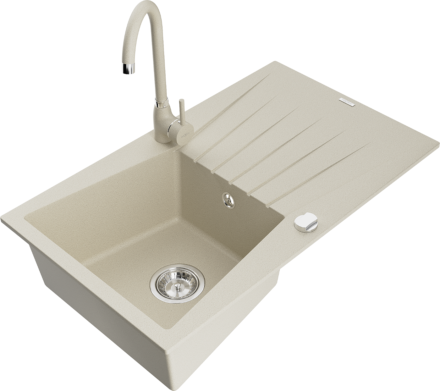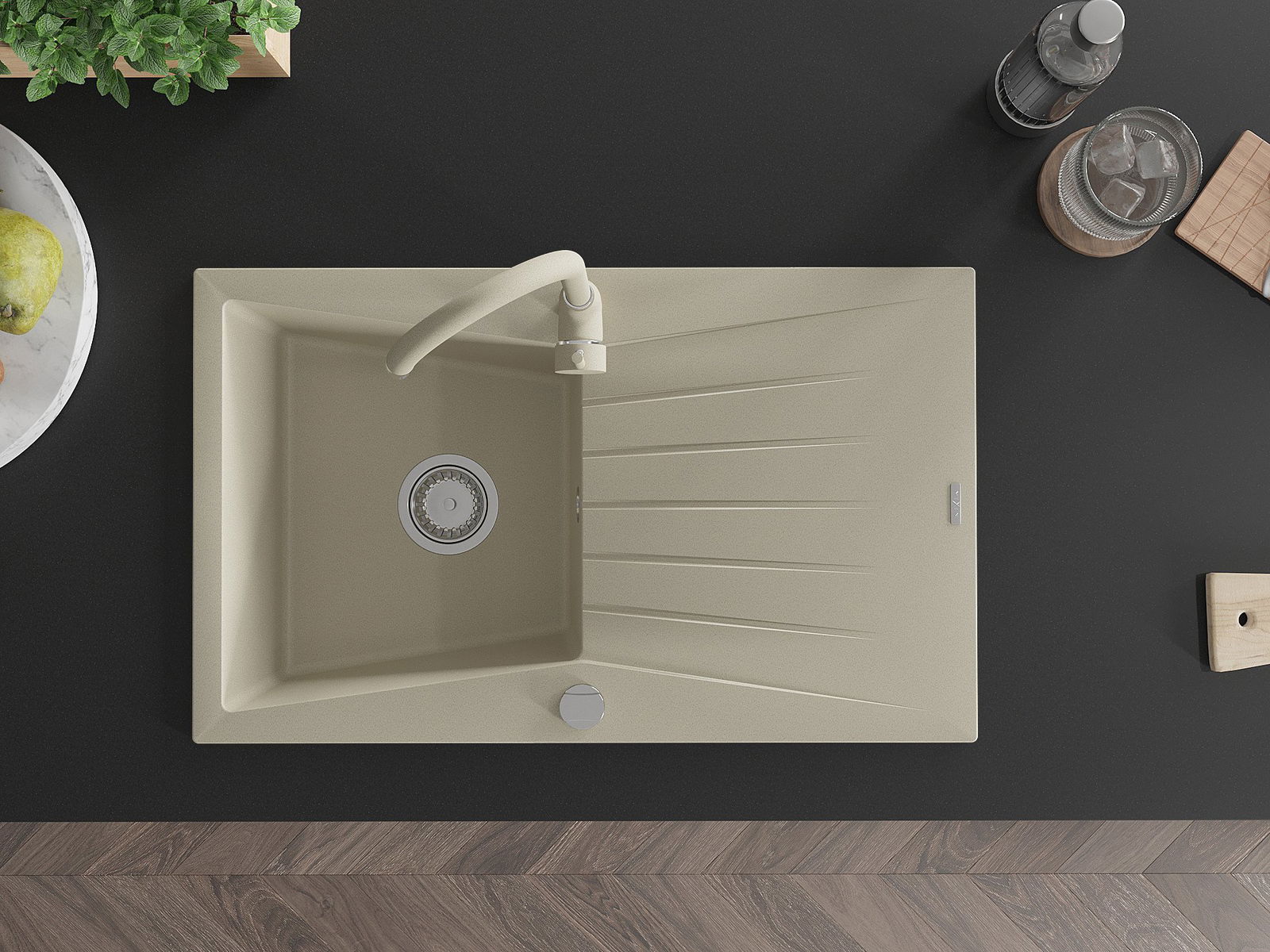Mexen Cesar chiuvetă din granit cu o cuvă și scurgător și baterie de bucătărie Telma, bej - 6514-69-670200-69