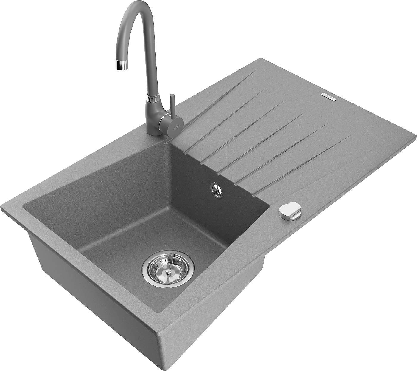 Mexen Cesar chiuvetă de bucătărie din granit cu 1 compartiment și scurgător și baterie de bucătărie Telma, gri - 6514-71-670200?