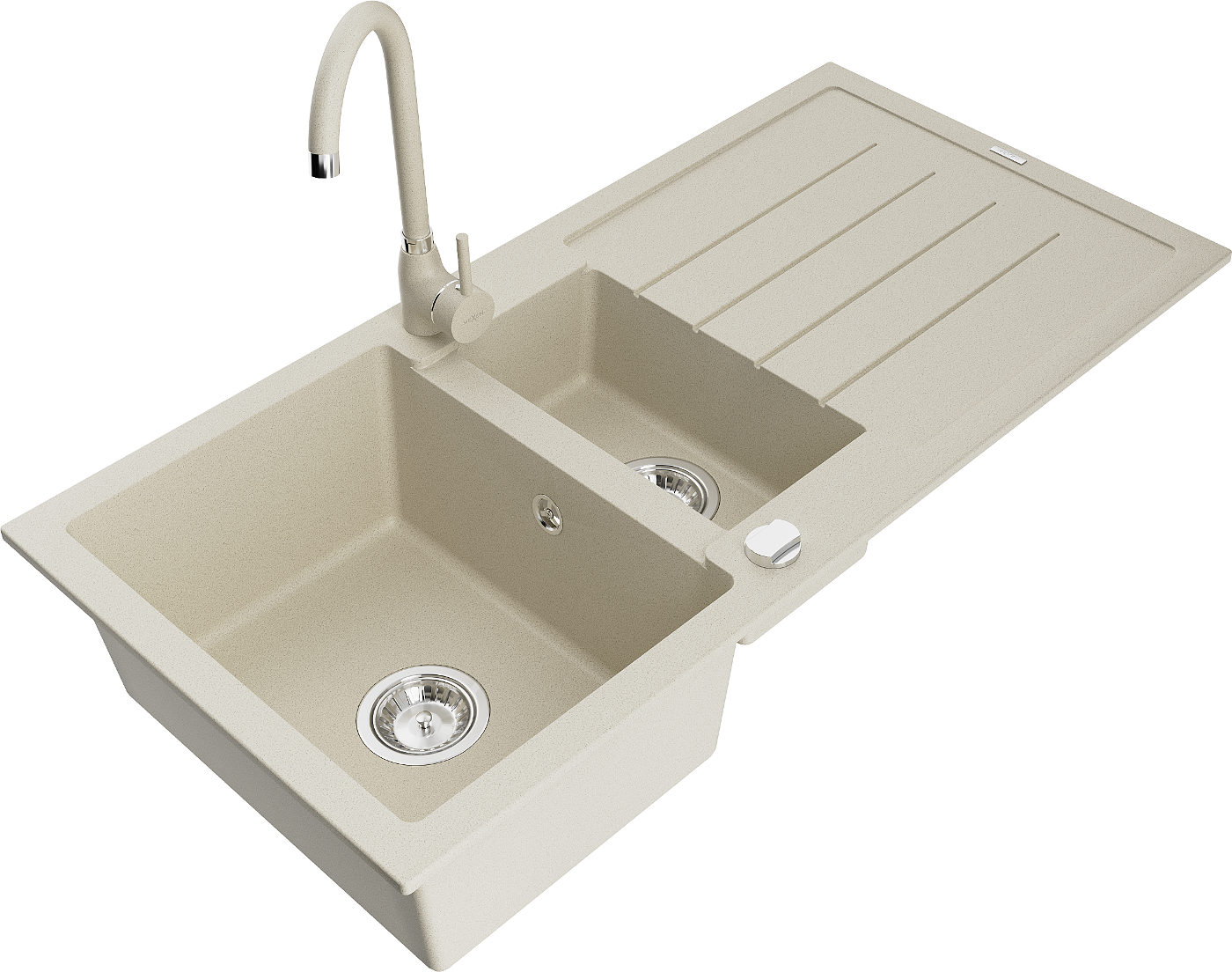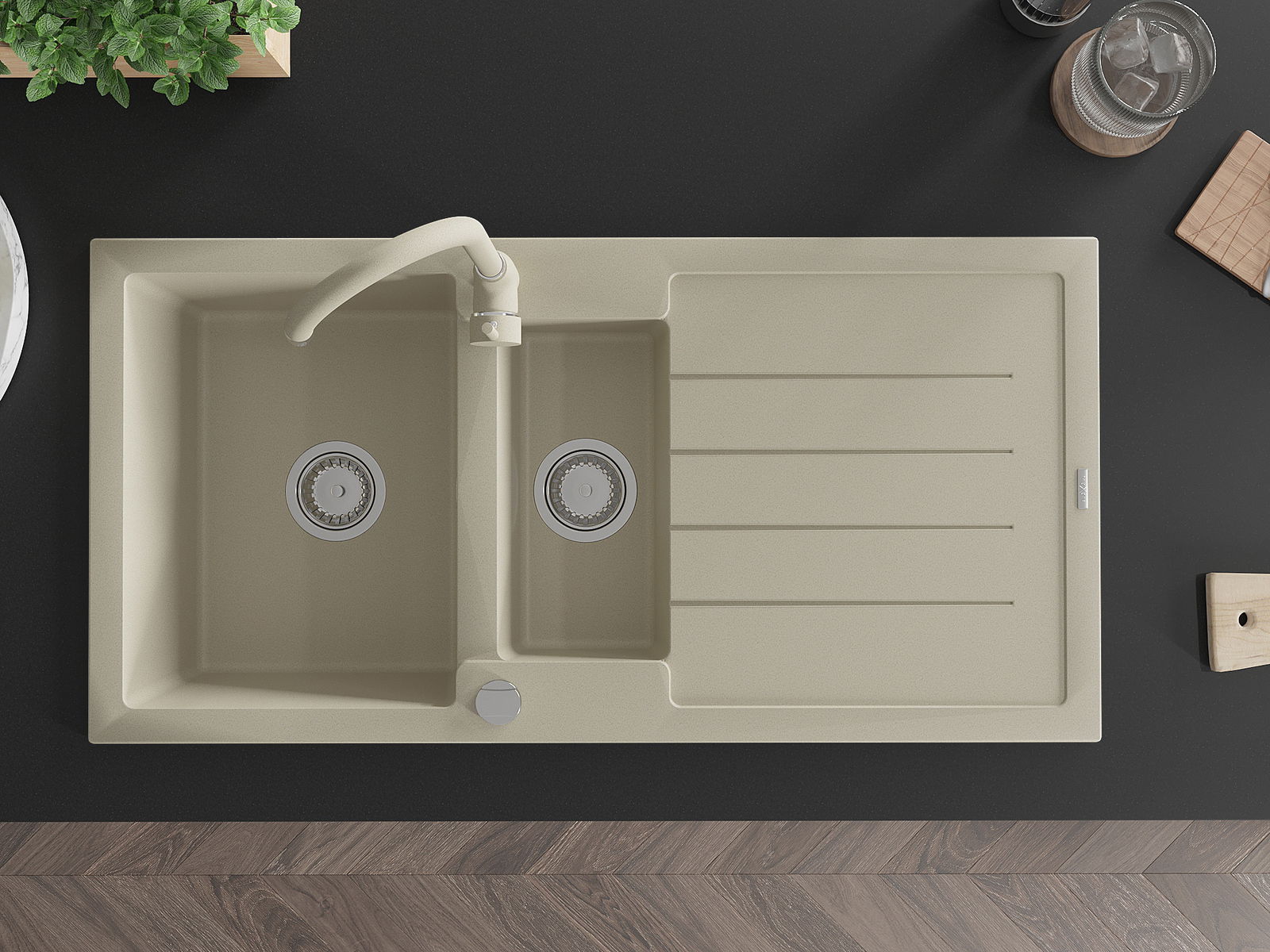 Mexen Andres chiuvetă din granit cu 1,5 compartimente cu scurgător și baterie de bucătărie Telma, bej - 6515-69-670200-69