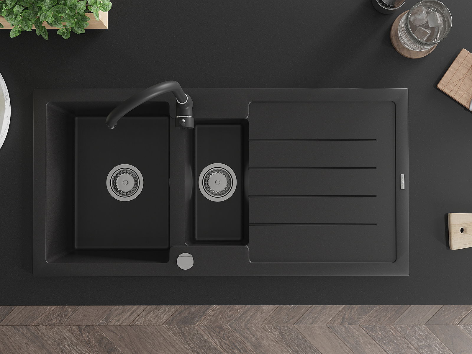 Chiuveta a fost realizată din granit de înaltă calitate. Reprezintă un complement elegant și, mai presus de toate, practic pentru orice bucătărie, indiferent de stilul acesteia. Calitatea înaltă și durabilitatea granitului asigură o utilizare de lungă durată.