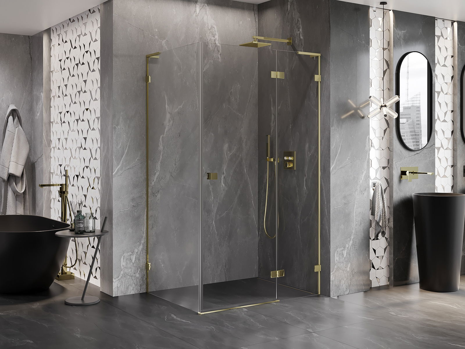 Mexen Lunar L cabină de duș cu deschidere dreapta 85 x 80 cm, transparentă, aurie - 834L-085-080-50-00-P