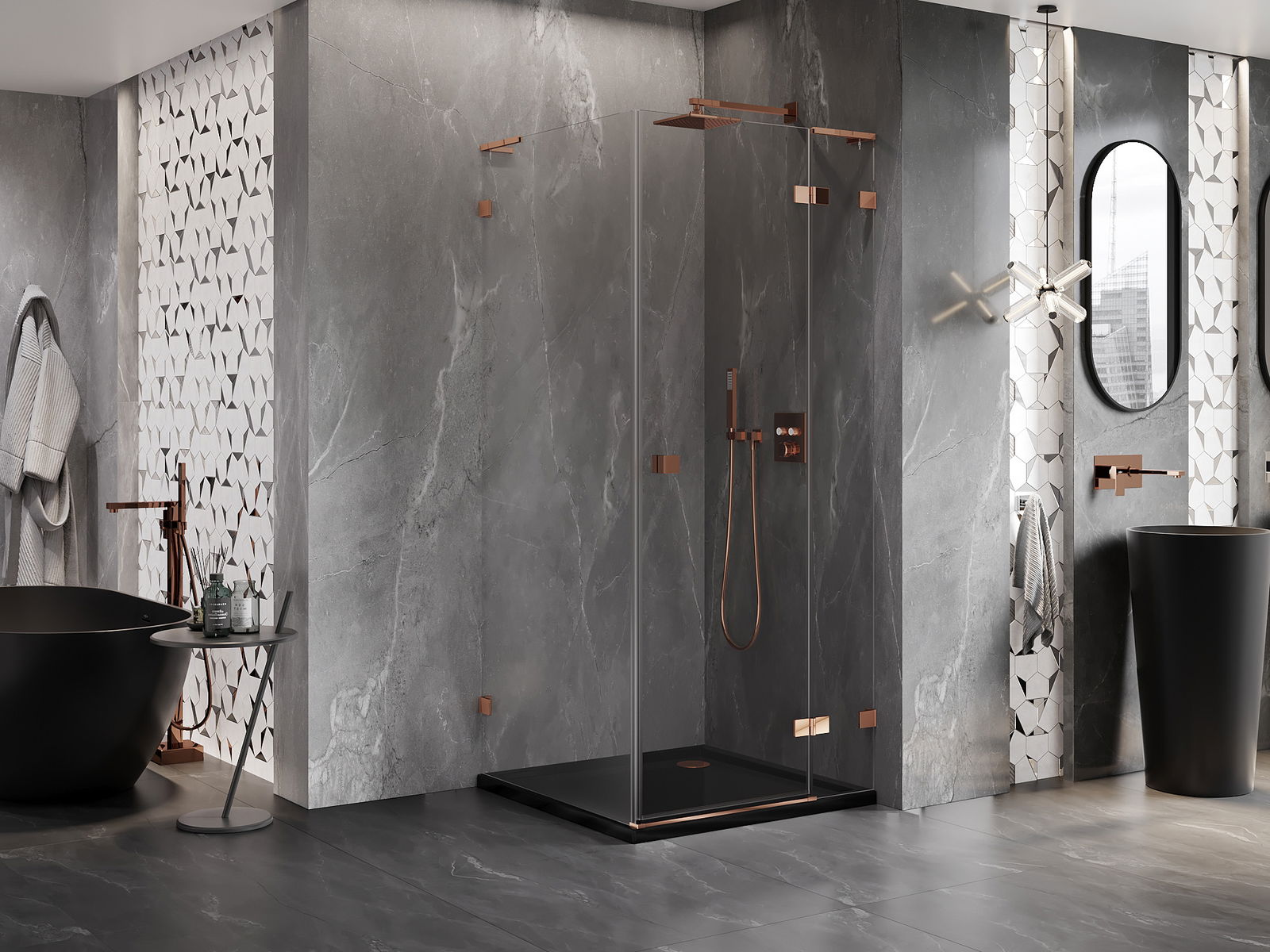 Mexen Lunar L cabină de duș cu deschidere spre dreapta 70 x 70 cm, transparentă, aur roz - 834L-070-070-60-00-P