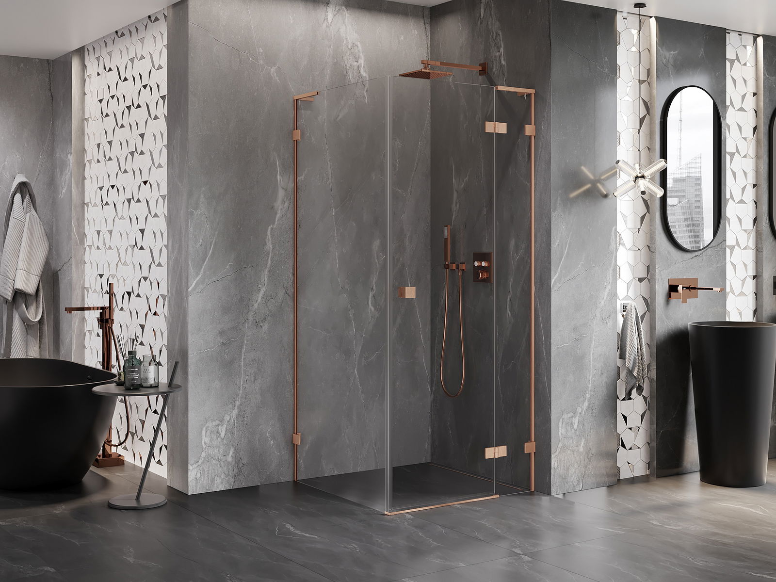 Mexen Lunar L cabină de duș cu deschidere dreapta 100 x 100 cm, transparent, cupru periat - 834L-100-100-65-00-P