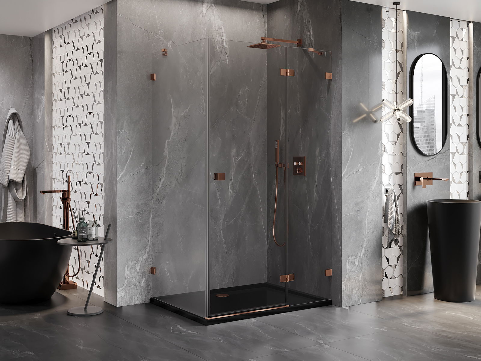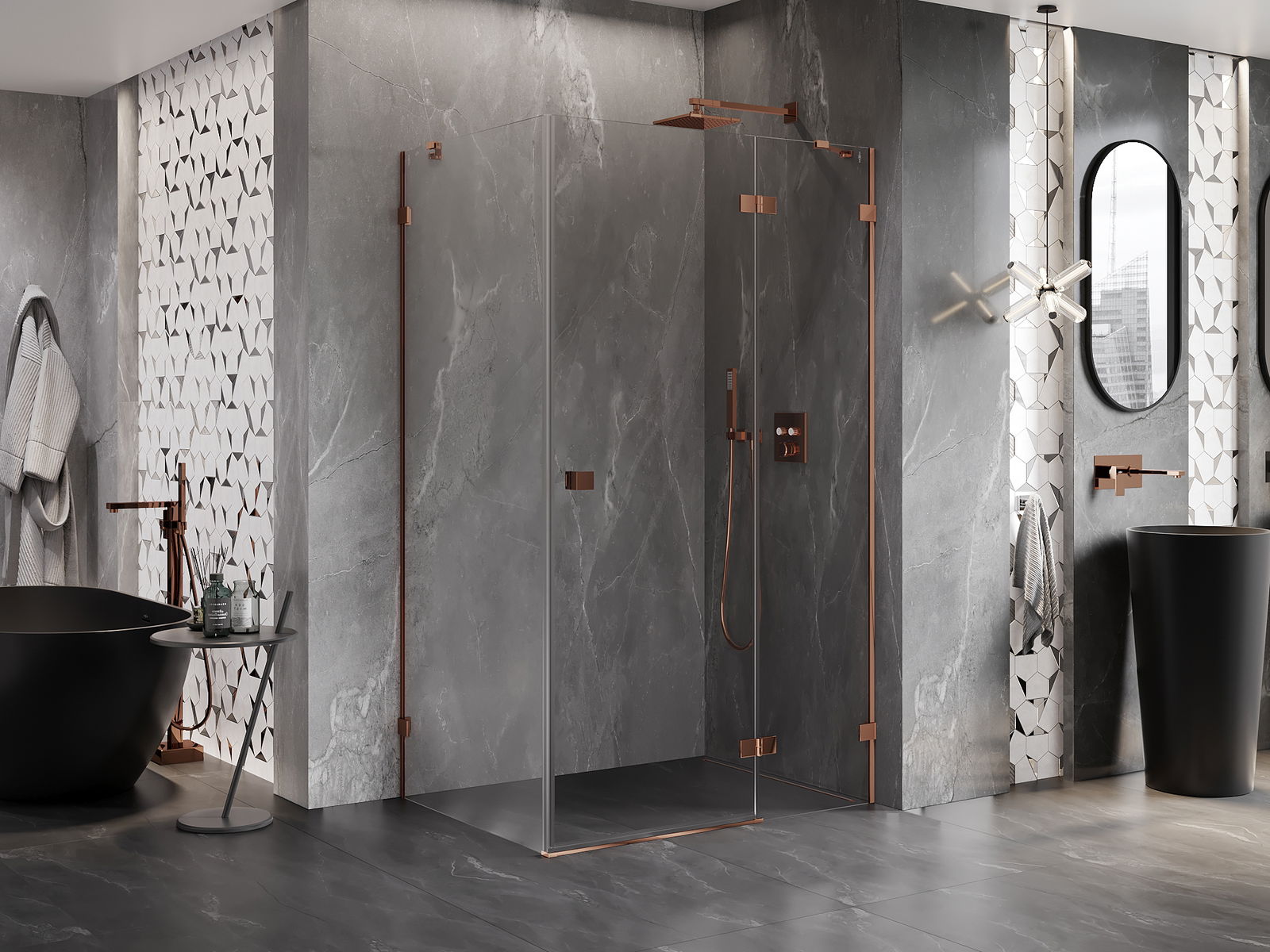 Clemele și balamalele sunt fabricate din alamă foarte durabilă și, în plus, formează o suprafață aliniată cu sticla. Este o alegere excelentă care îmbină eleganța, durabilitatea și designul modern. Datorită acestor soluții, dușul câștigă în estetică și facilitează întreținerea curățeniei.