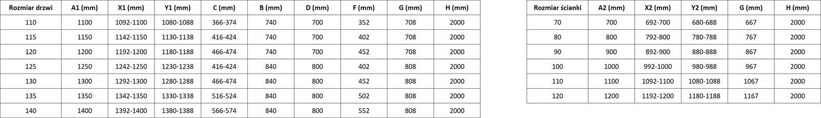 Dimensiune: 115x110 cm (ușa stângă 115 cm, perete 110 cm)