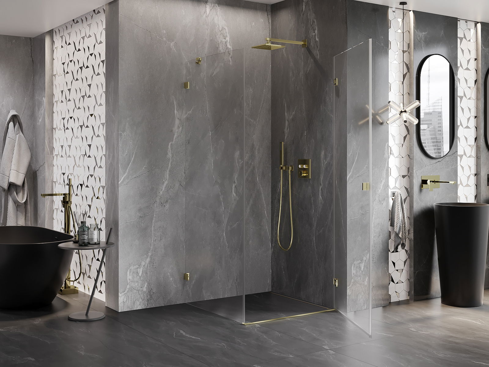 Clemele au fost realizate din alamă foarte durabilă și, în plus, creează o suprafață de sticlă nivelată. Este o alegere excelentă care combină eleganța, durabilitatea și designul modern. Datorită acestor soluții, dușul câștigă în estetică și, în același timp, facilitează menținerea curățeniei.