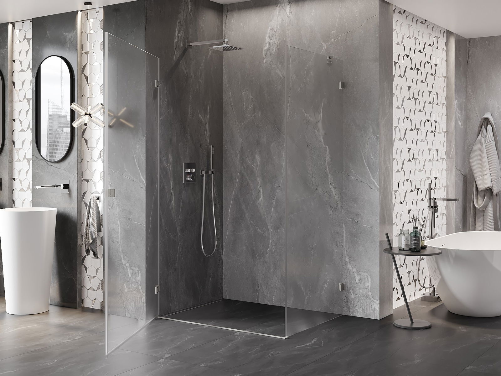 Clemele au fost realizate din alamă foarte durabilă și, în plus, creează o suprafață de sticlă nivelată. Este o alegere excelentă care combină eleganța, durabilitatea și designul modern. Datorită acestor soluții, dușul câștigă în estetică și, în același timp, facilitează menținerea curățeniei.
