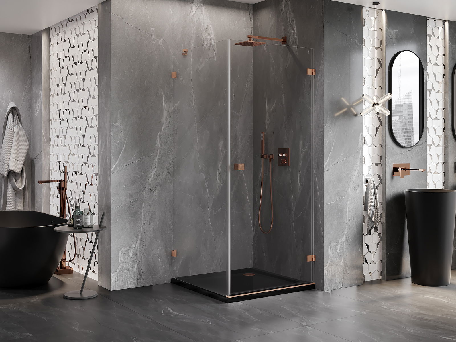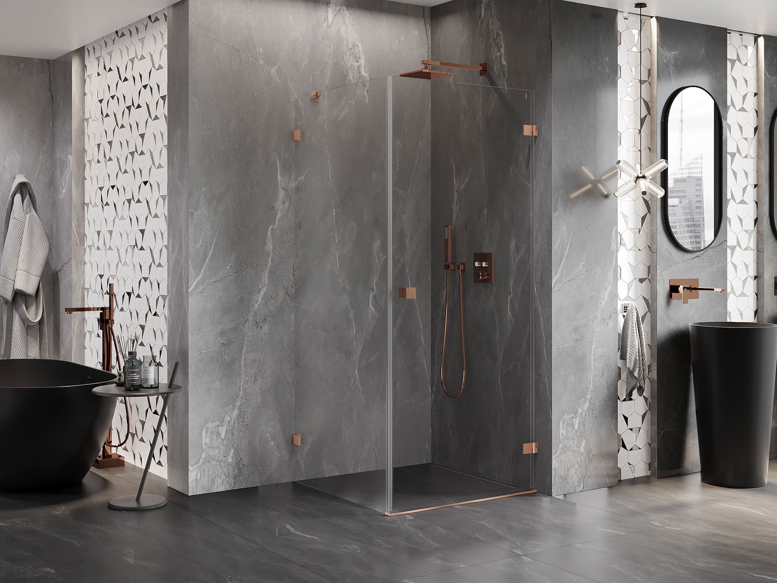 Clemele au fost realizate din alamă foarte durabilă și, în plus, creează o suprafață de sticlă nivelată. Este o alegere excelentă care combină eleganța, durabilitatea și designul modern. Datorită acestor soluții, dușul câștigă în estetică și, în același timp, facilitează menținerea curățeniei.