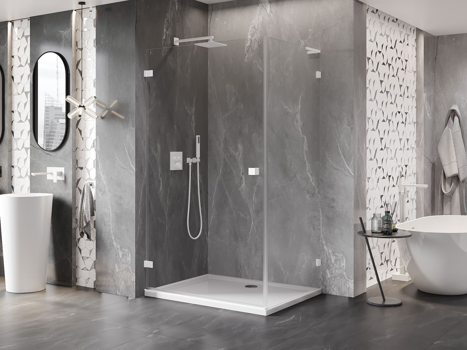 Clemele au fost realizate din alamă foarte durabilă și, în plus, creează o suprafață de sticlă nivelată. Este o alegere excelentă care combină eleganța, durabilitatea și designul modern. Datorită acestor soluții, dușul câștigă în estetică și, în același timp, facilitează menținerea curățeniei.