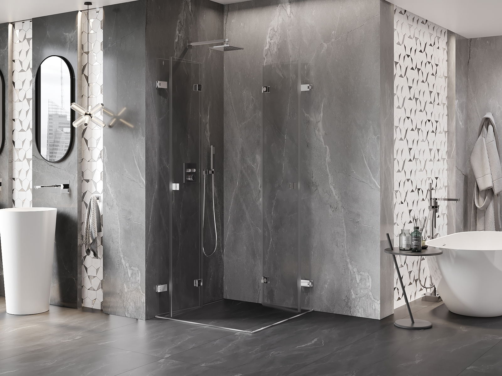 Posibilitatea de a plia ușile, atât către exterior, cât și către interior, permite obținerea mai mult spațiu atunci când nu se folosește dușul. Este o soluție ideală pentru băi mai mici, maximizând utilizarea spațiului disponibil.