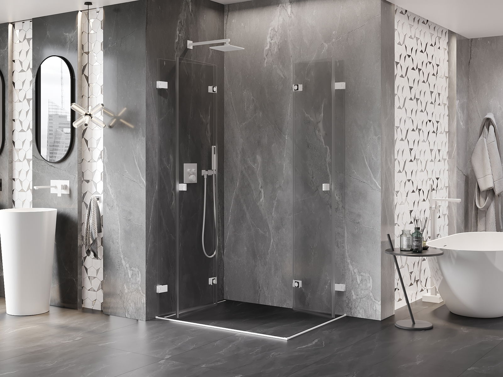 Posibilitatea de a plia ușile, atât către exterior, cât și către interior, permite obținerea mai mult spațiu atunci când nu se folosește dușul. Este o soluție ideală pentru băi mai mici, maximizând utilizarea spațiului disponibil.