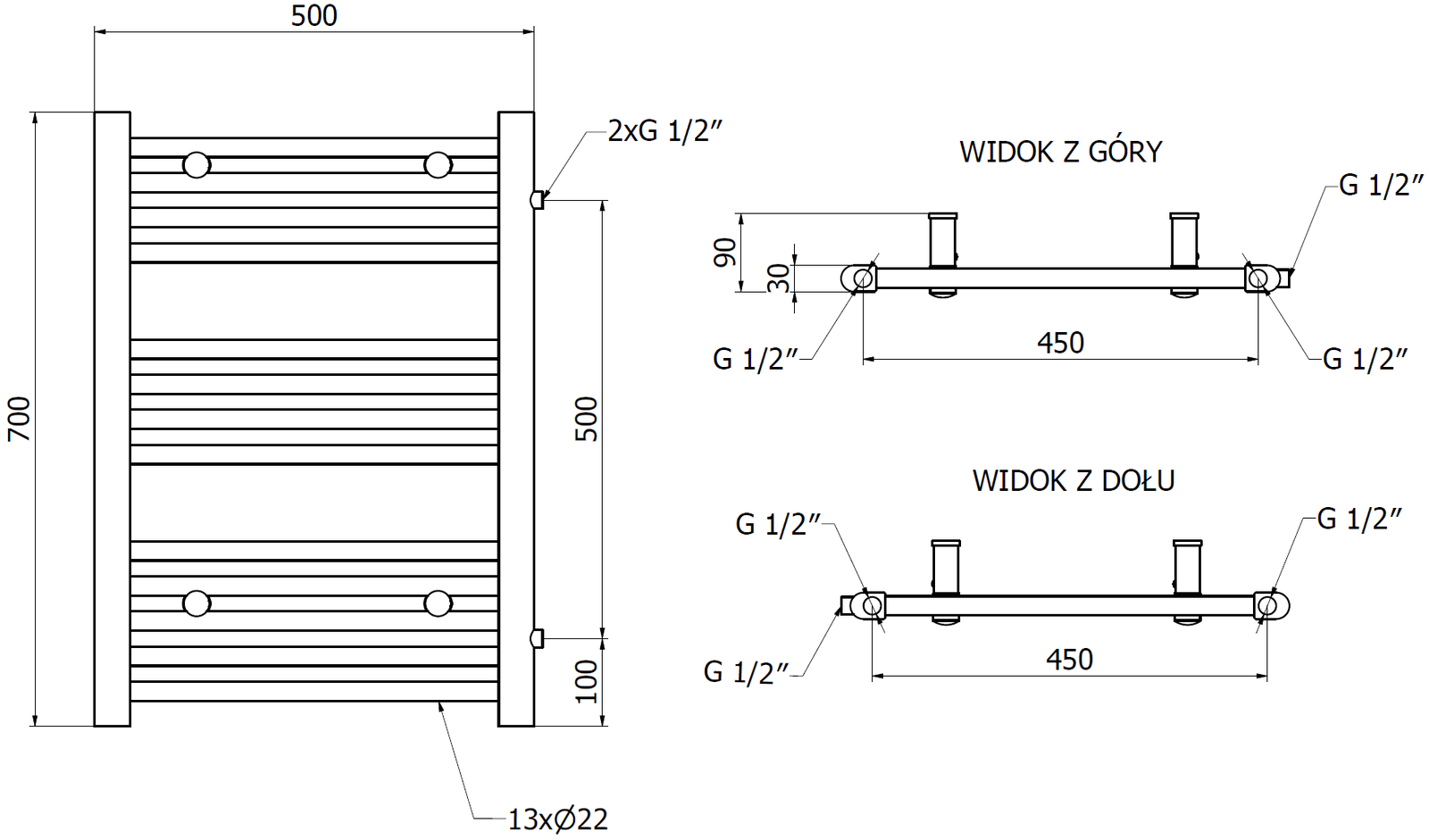 Mexen Mars radiator baie lateral 700 x 500 mm, 284 W, alb - W110-0700-500-00-20-S