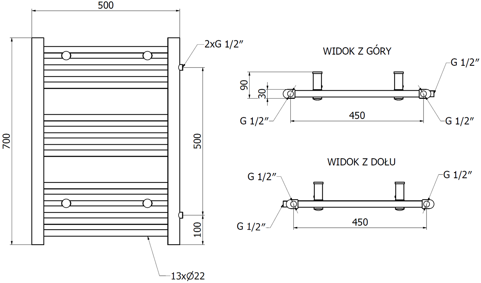 - 2xG ½″ lateral pe partea dreaptă