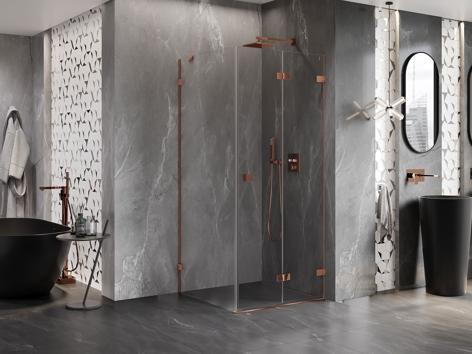 Clemele și balamalele sunt fabricate din alamă foarte durabilă și, în plus, formează o suprafață aliniată cu sticla. Este o alegere excelentă care îmbină eleganța, durabilitatea și designul modern. Datorită acestor soluții, dușul câștigă în estetică și facilitează întreținerea curățeniei.