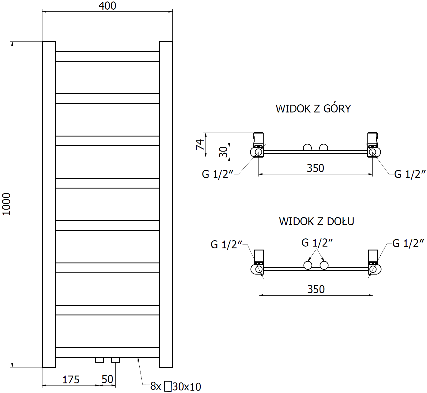Mexen Bolt radiator baie 1000 x 400 mm, 228 W, antracit - W126-1000-400-00-66