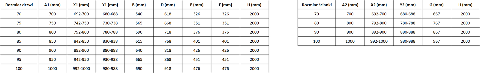Dimensiune: 70x70 cm (ușă stânga 70 cm, perete 70 cm)