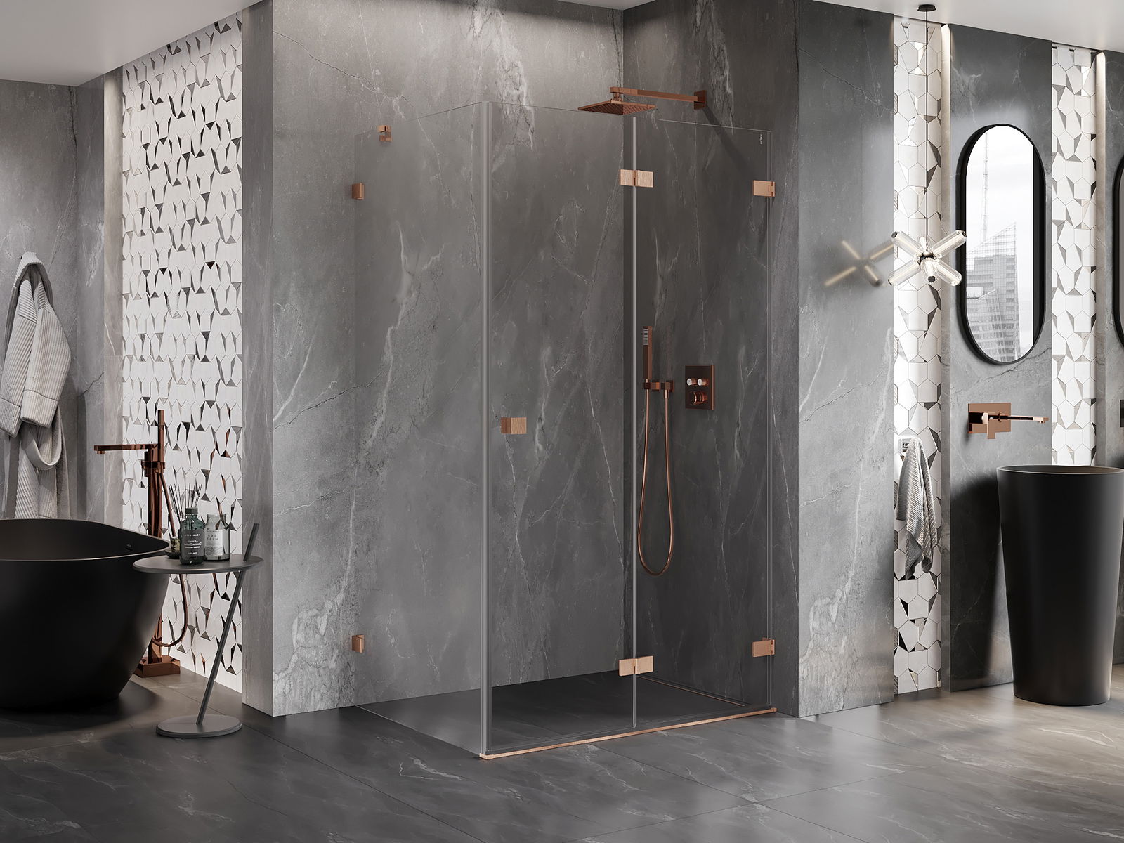 Mexen Lunar-F cabină de duș rabatabilă dreaptă 95 x 90 cm, transparent, cupru periat- 836-095-090-65-00-P