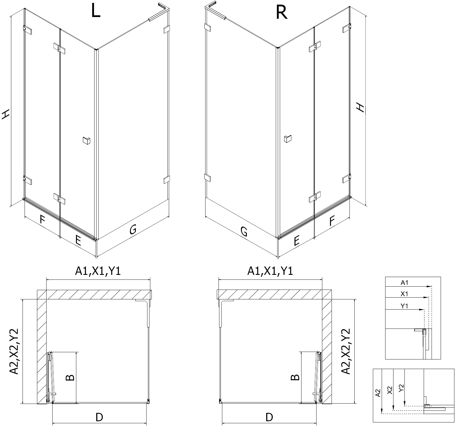 Grosimea sticlei: ușă 6 mm, perete lateral 8 mm