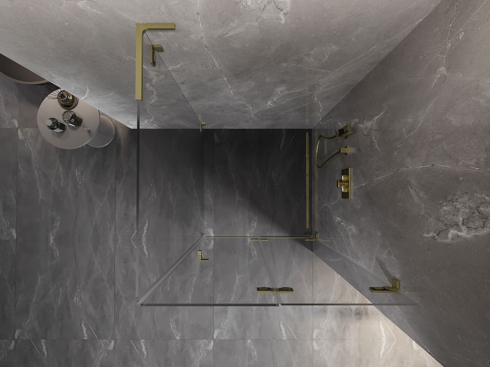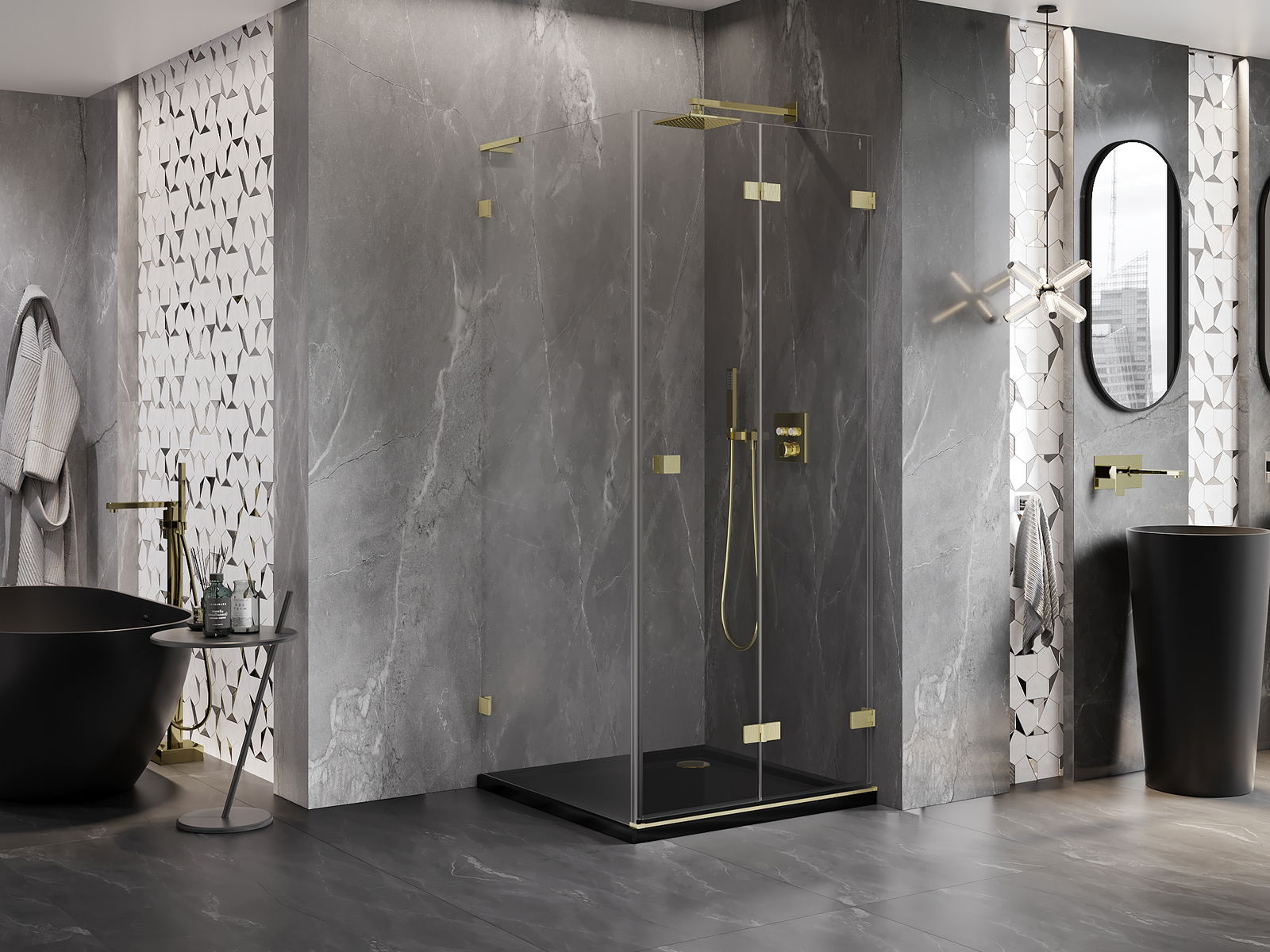 Mexen Lunar-F L cabină de duș pliabilă dreapta 90 x 90 cm, transparentă, auriu periat - 836L-090-090-55-00-P