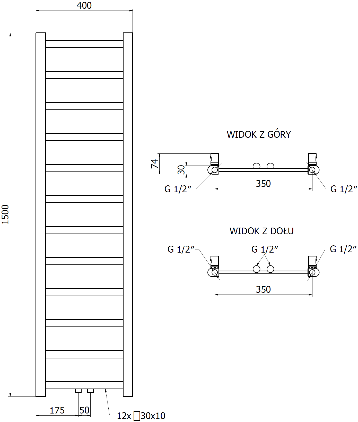 Mexen Bolt radiator baie 1500 x 400 mm, 342 W, negru - W126-1500-400-00-70