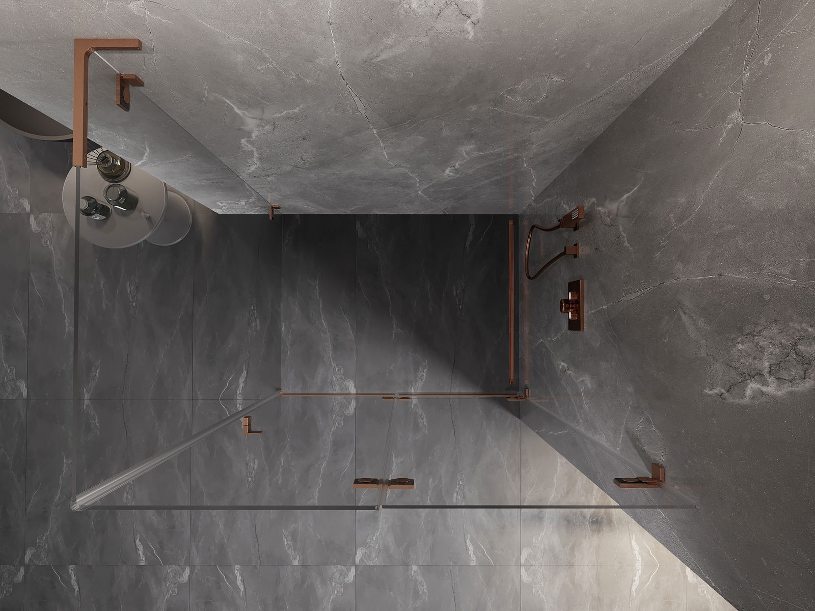 Mexen Lunar-F L cabină de duș pliabilă dreaptă 80 x 70 cm, transparent, cupru periat - 836L-080-070-65-00-P