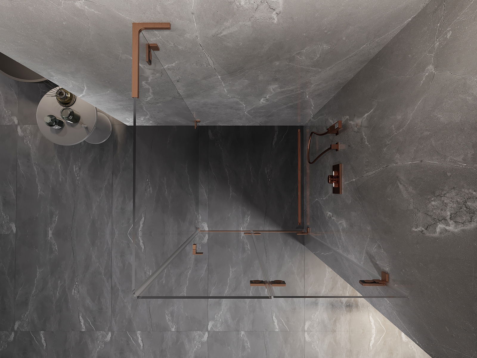 Mexen Lunar-F L cabină de duș pliabilă dreapta 100 x 100 cm, transparent, cupru periat - 836L-100-100-65-00-P