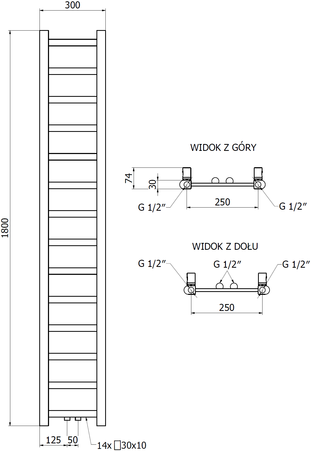 Mexen Bolt radiator baie 1800 x 300 mm, 351 W, negru - W126-1800-300-00-70