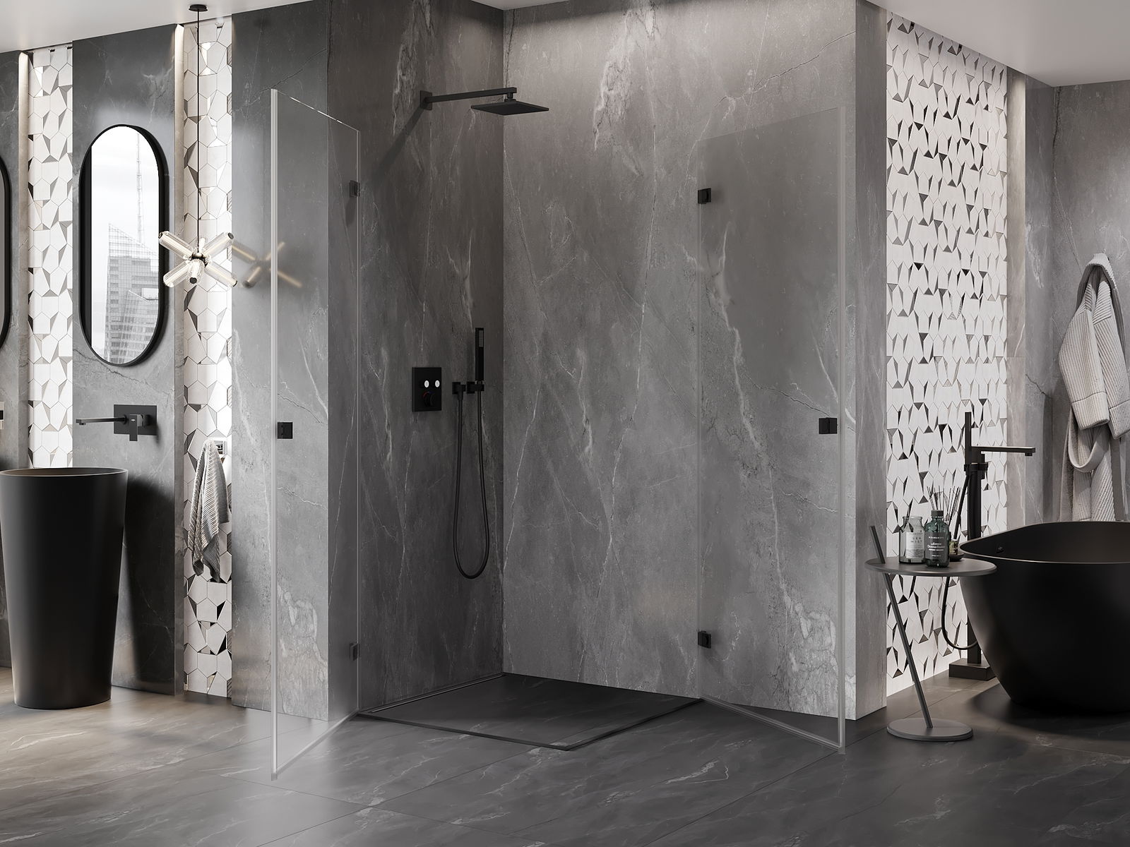 Clemele au fost realizate din alamă foarte durabilă și, în plus, creează o suprafață de sticlă nivelată. Este o alegere excelentă care combină eleganța, durabilitatea și designul modern. Datorită acestor soluții, dușul câștigă în estetică și, în același timp, facilitează menținerea curățeniei.