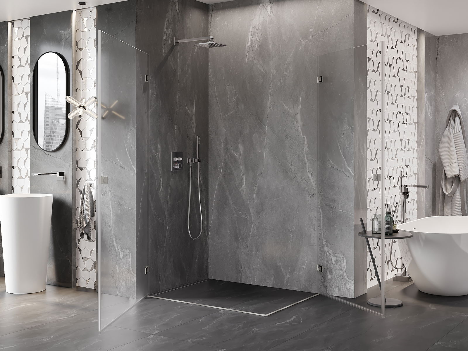 Clemele au fost realizate din alamă foarte durabilă și, în plus, creează o suprafață de sticlă nivelată. Este o alegere excelentă care combină eleganța, durabilitatea și designul modern. Datorită acestor soluții, dușul câștigă în estetică și, în același timp, facilitează menținerea curățeniei.