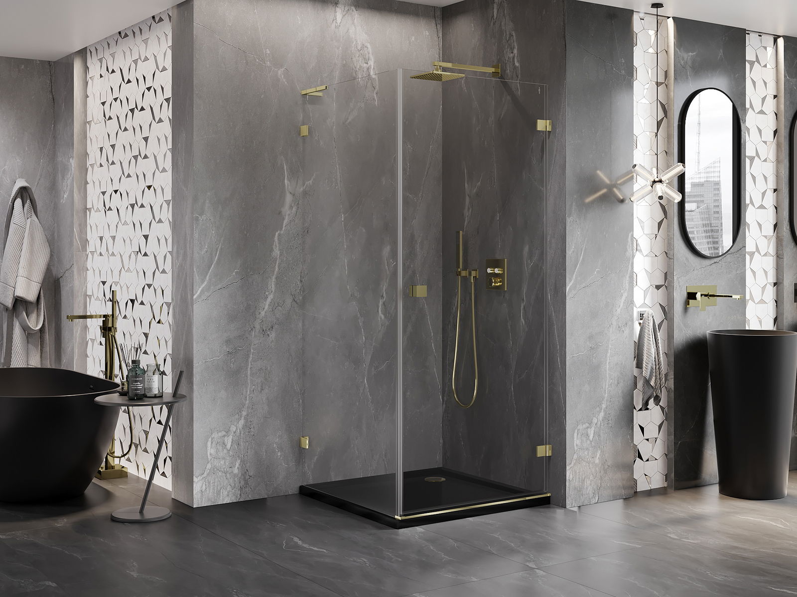Mexen Lunar-B L cabină de duș cu ușă dreaptă 80 x 80 cm, transparentă, aurie - 832L-080-080-50-00-P