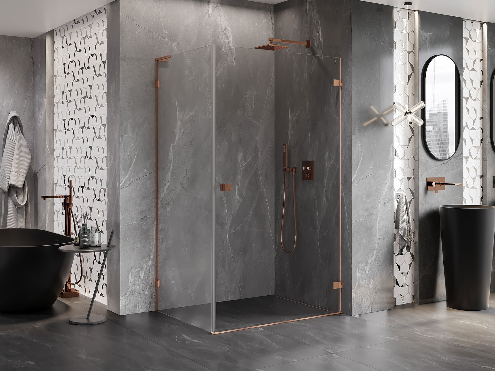 Mexen Lunar-B L cabină de duș batantă dreapta 85 x 70 cm, transparent, cupru periat - 832L-085-070-65-00-P