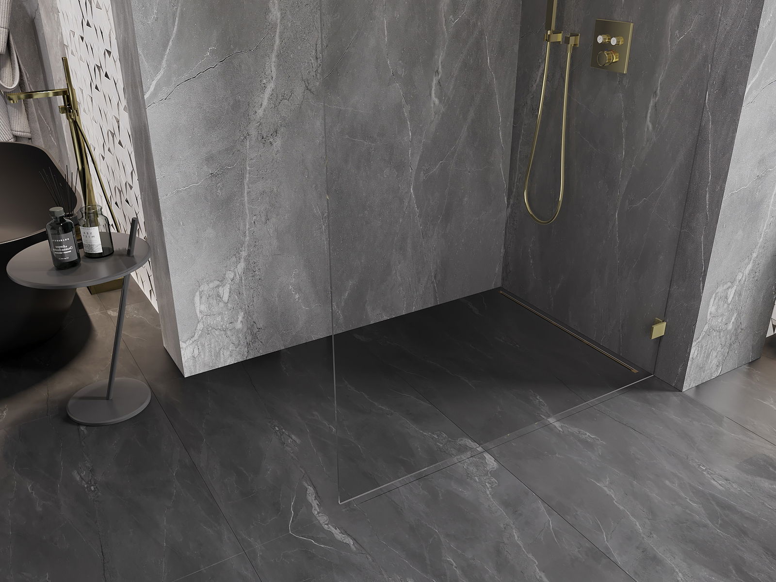 Mexen Lunar perete de duș Walk-in dreapta 100 x 200 cm, transparent 8 mm, auriu periat - 830-100-000-55-00-P