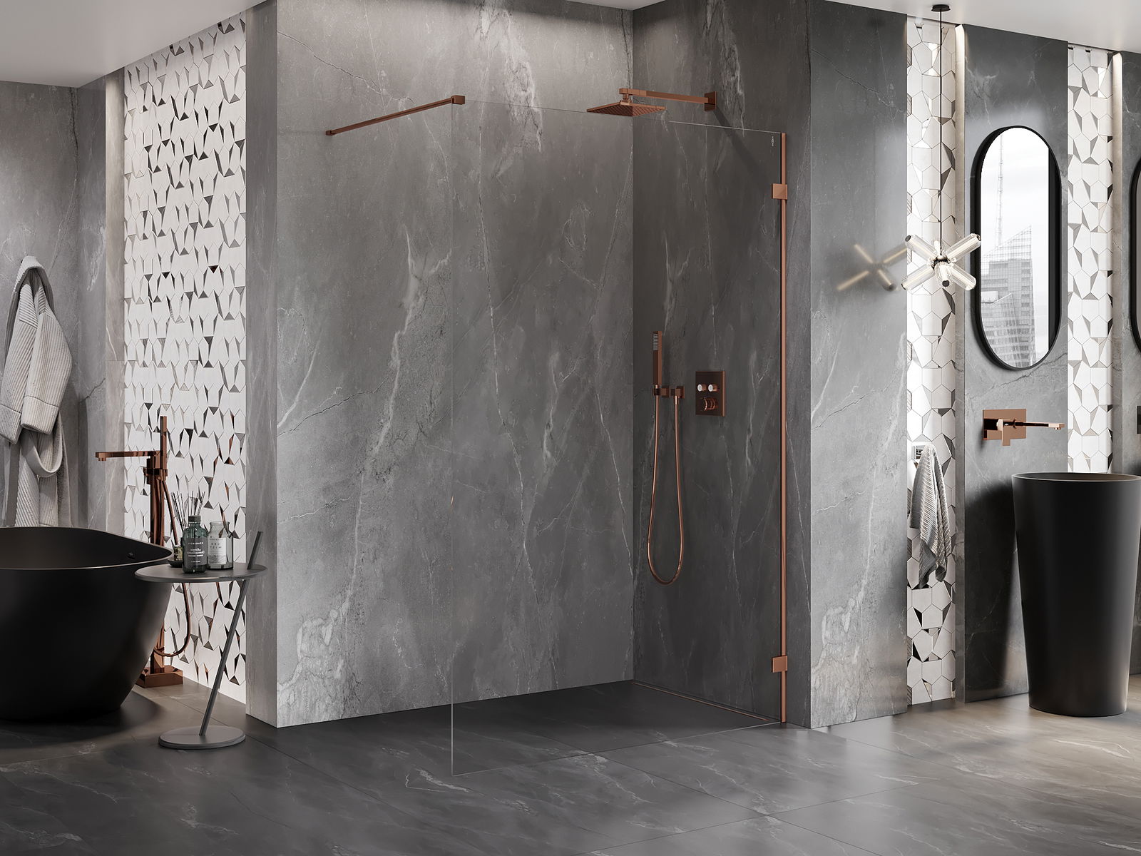 Clemele au fost realizate din alamă foarte durabilă și, în plus, creează o suprafață de sticlă nivelată. Este o alegere excelentă care combină eleganța, durabilitatea și designul modern. Datorită acestor soluții, dușul câștigă în estetică și, în același timp, facilitează menținerea curățeniei.