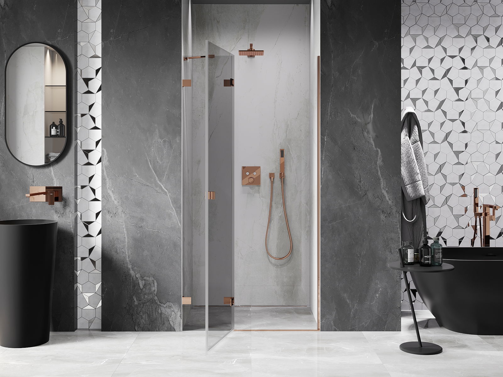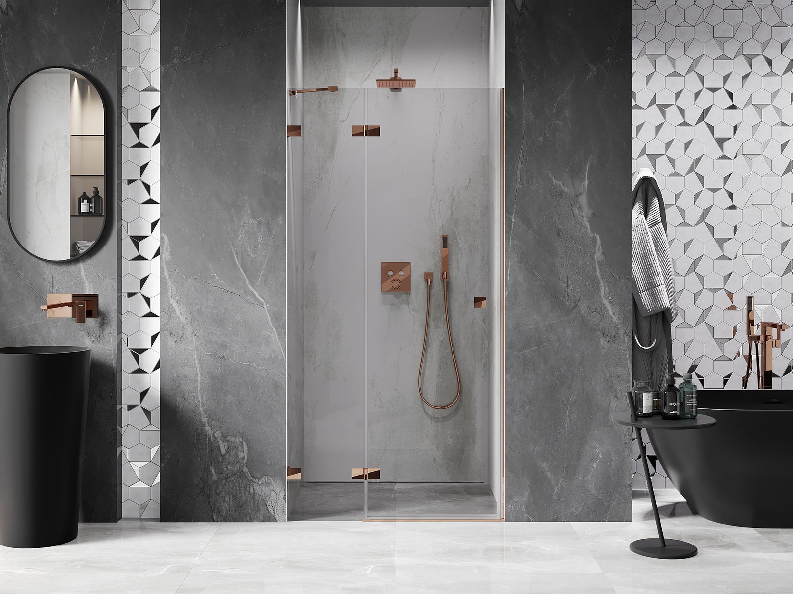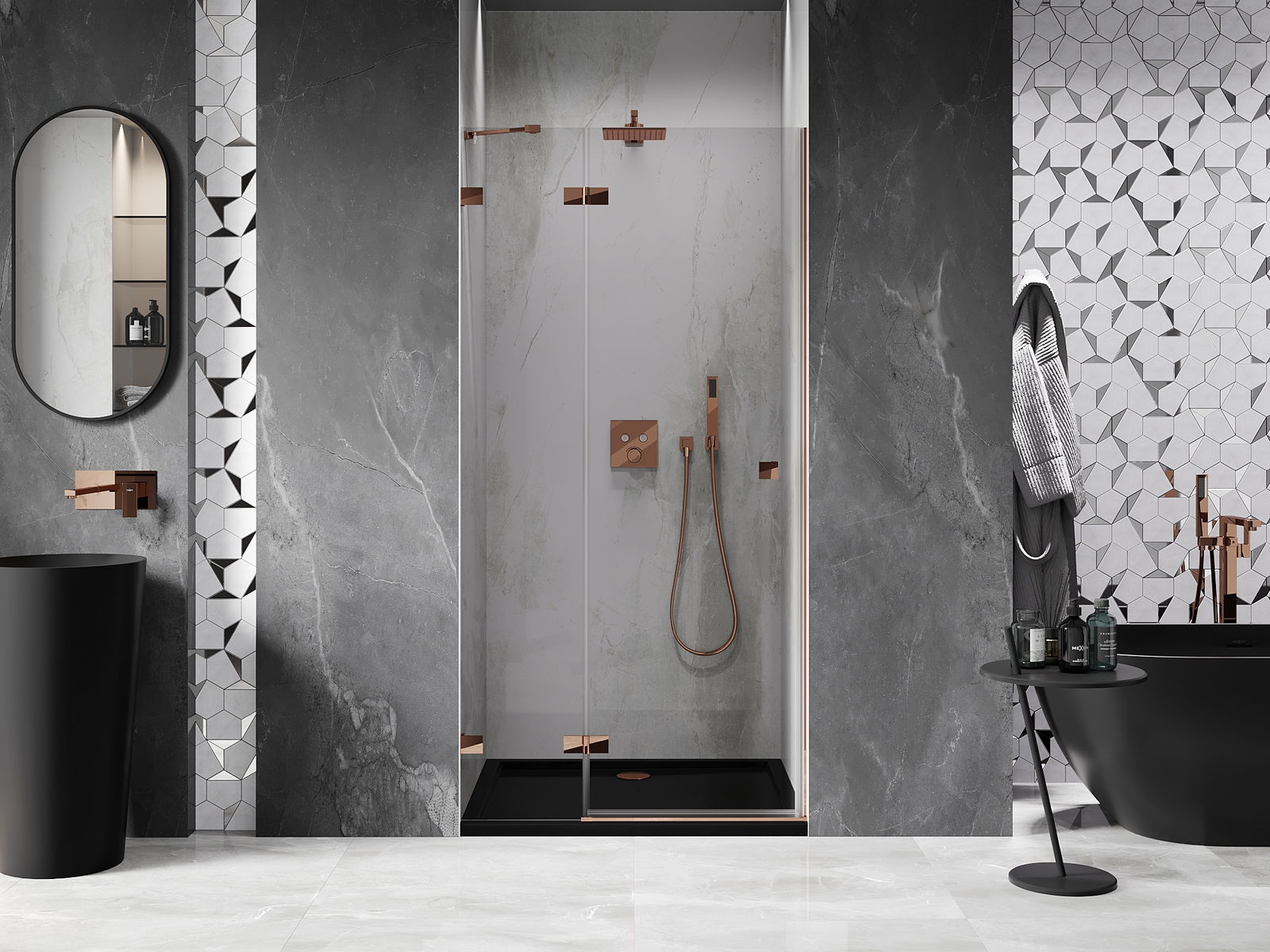 Mexen Lunar ușă de duș batantă stânga 90 cm, transparent, aur roz - 834-090-000-60-00-L