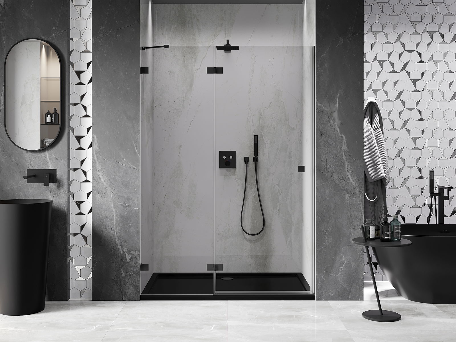 Mexen Lunar ușă de duș batantă stângă 130 cm, transparentă, neagră - 834-130-000-70-00-L