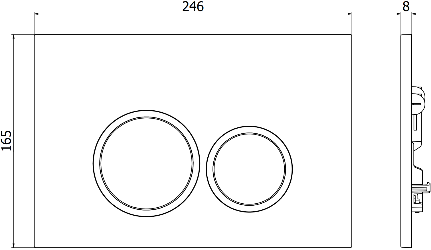 Produsul are 2 butoane pentru spălare. Un buton mare, care servește pentru a elibera o cantitate mai mare de apă de spălare, și un buton mic pentru cantități mai mici. În acest fel, utilizatorul poate ajusta cu ușurință cantitatea de apă utilizată la nevoile sale.