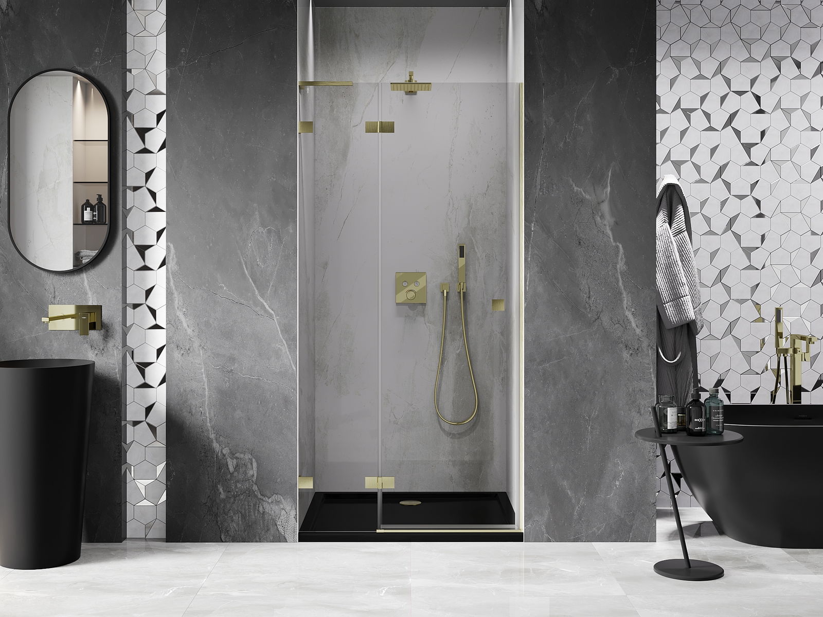 Clemele și balamalele sunt fabricate din alamă foarte durabilă și, în plus, formează o suprafață aliniată cu sticla. Este o alegere excelentă care îmbină eleganța, durabilitatea și designul modern. Datorită acestor soluții, dușul câștigă în estetică și facilitează întreținerea curățeniei.