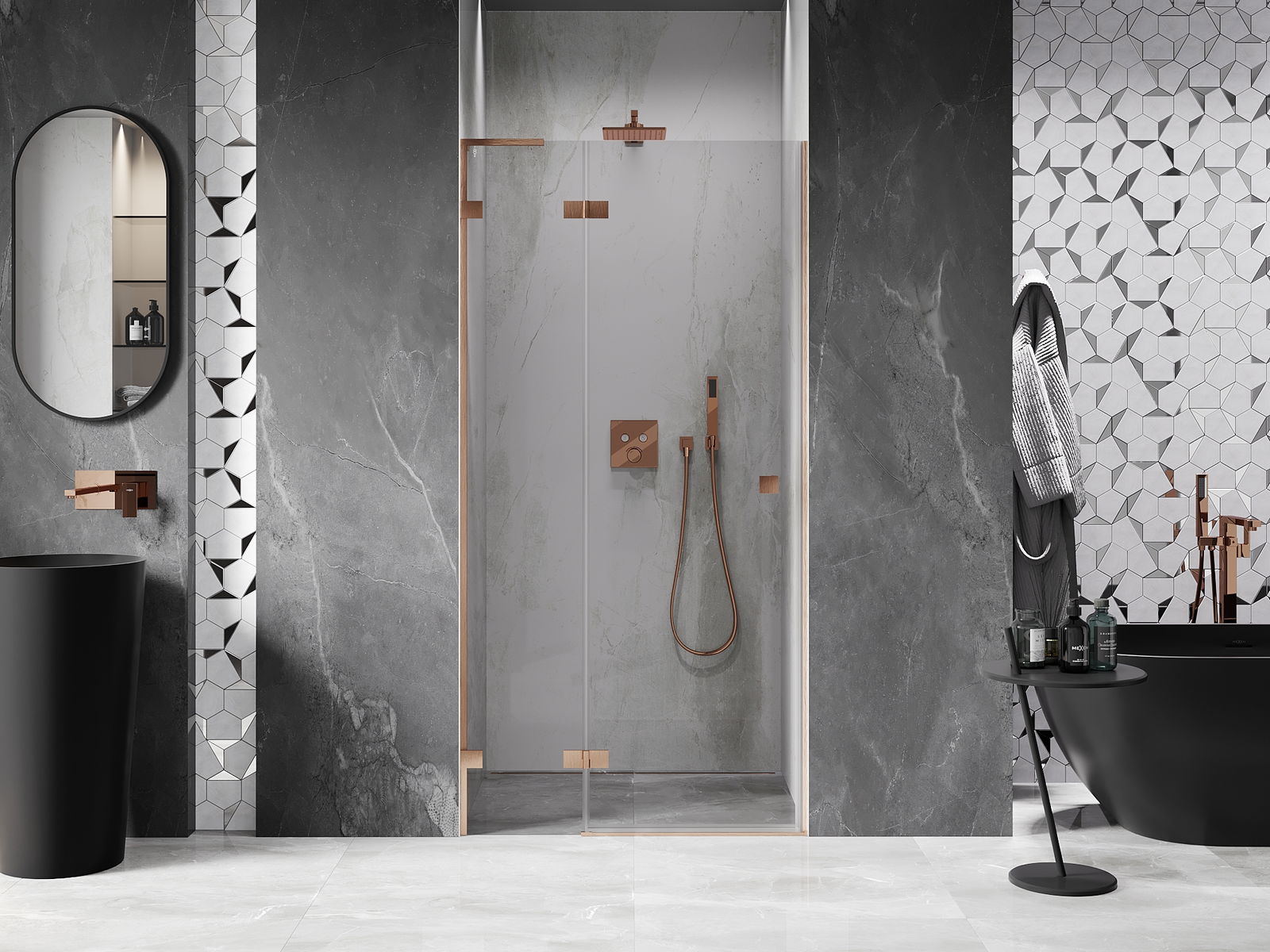 Mexen Lunar L ușă de duș batantă stânga 110 cm, transparentă, cupru periat - 834L-110-000-65-00-L