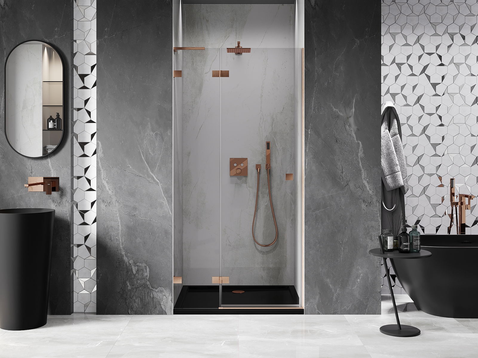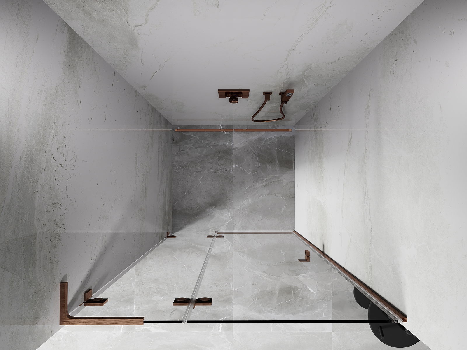 Mexen Lunar L uși de duș batante stânga 125 cm, transparente, cupru periat - 834L-125-000-65-00-L