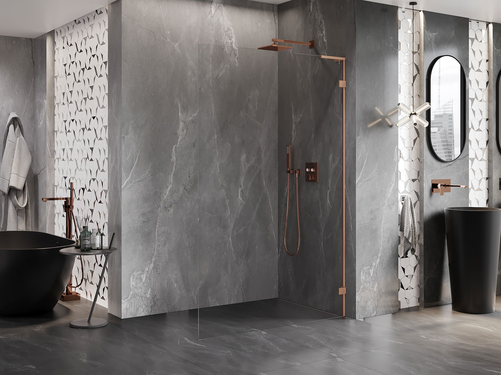 Clemele au fost realizate din alamă foarte durabilă și, în plus, creează o suprafață de sticlă nivelată. Este o alegere excelentă care combină eleganța, durabilitatea și designul modern. Datorită acestor soluții, dușul câștigă în estetică și, în același timp, facilitează menținerea curățeniei.
