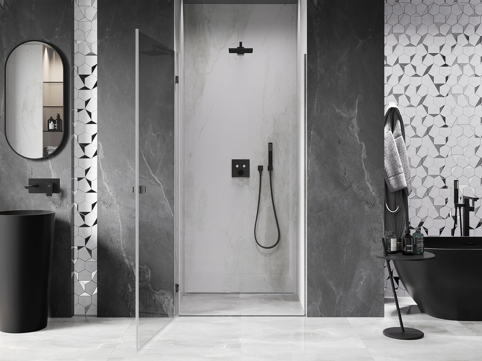 Clemele au fost realizate din alamă foarte durabilă și, în plus, creează o suprafață de sticlă nivelată. Este o alegere excelentă care combină eleganța, durabilitatea și designul modern. Datorită acestor soluții, dușul câștigă în estetică și, în același timp, facilitează menținerea curățeniei.