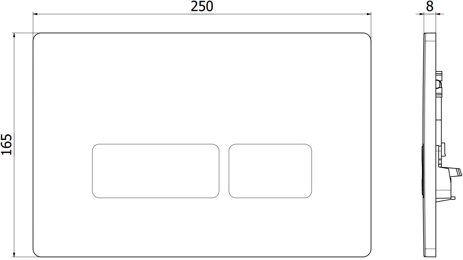 Produsul are 2 butoane pentru spălare. Un buton mare, care servește pentru a elibera o cantitate mai mare de apă de spălare, și un buton mic pentru cantități mai mici. În acest fel, utilizatorul poate ajusta cu ușurință cantitatea de apă utilizată la nevoile sale.