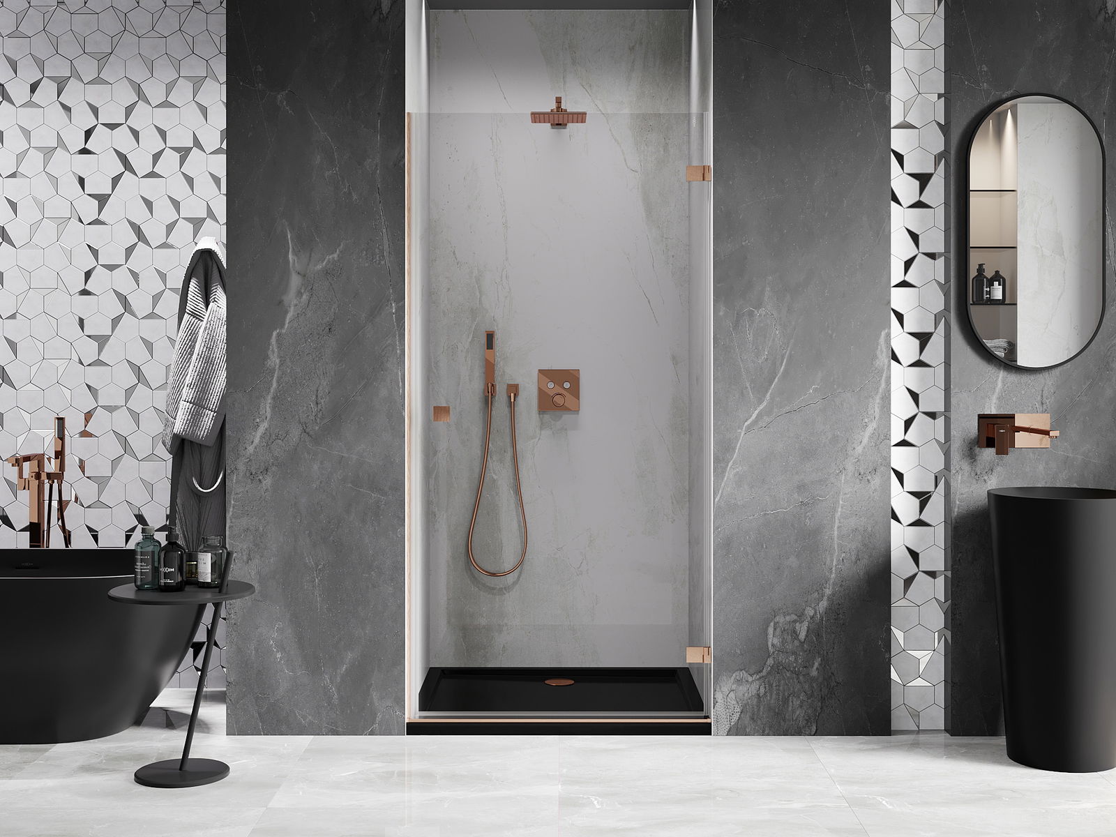 Mexen Lunar-B ușă de duș batantă dreaptă 65 cm, transparentă, cupru periat - 832-065-000-65-00-P