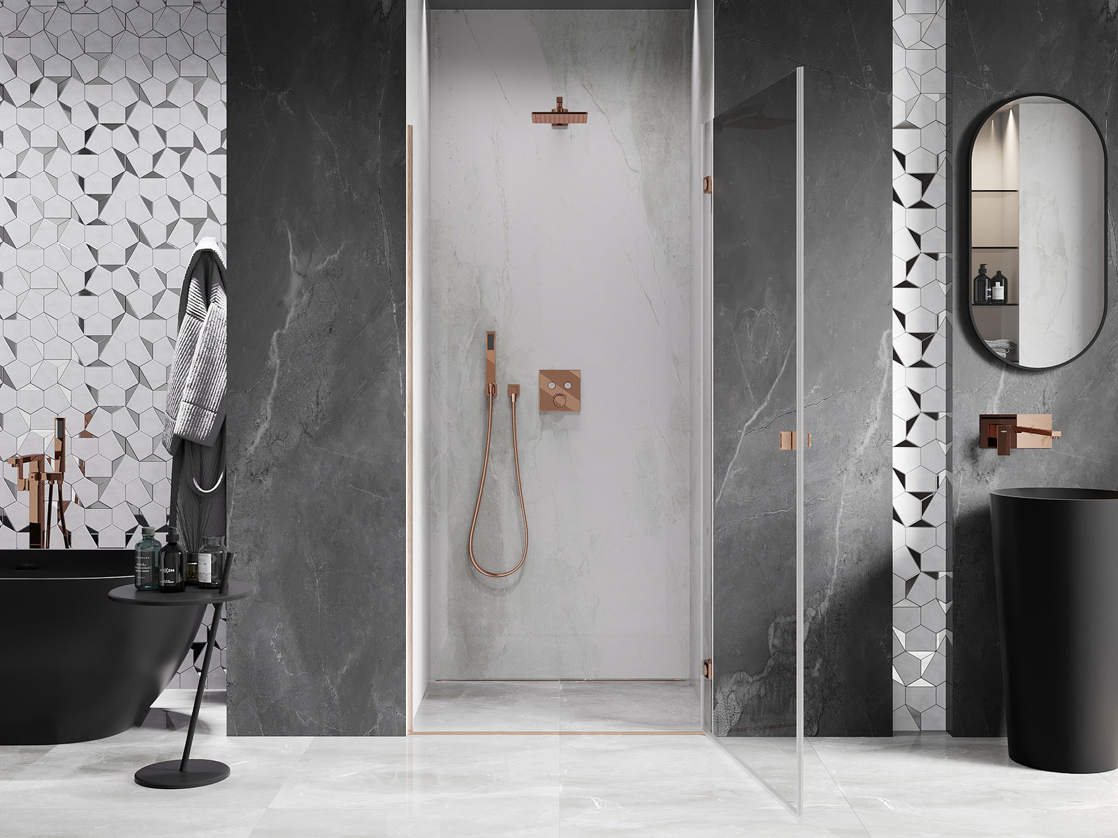 Clemele au fost realizate din alamă foarte durabilă și, în plus, creează o suprafață de sticlă nivelată. Este o alegere excelentă care combină eleganța, durabilitatea și designul modern. Datorită acestor soluții, dușul câștigă în estetică și, în același timp, facilitează menținerea curățeniei.