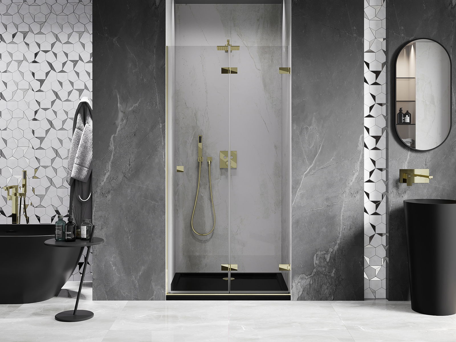 Mexen Lunar-F uși de duș pliabile dreapta 90 cm, transparent, aurii - 836-090-000-50-00-P