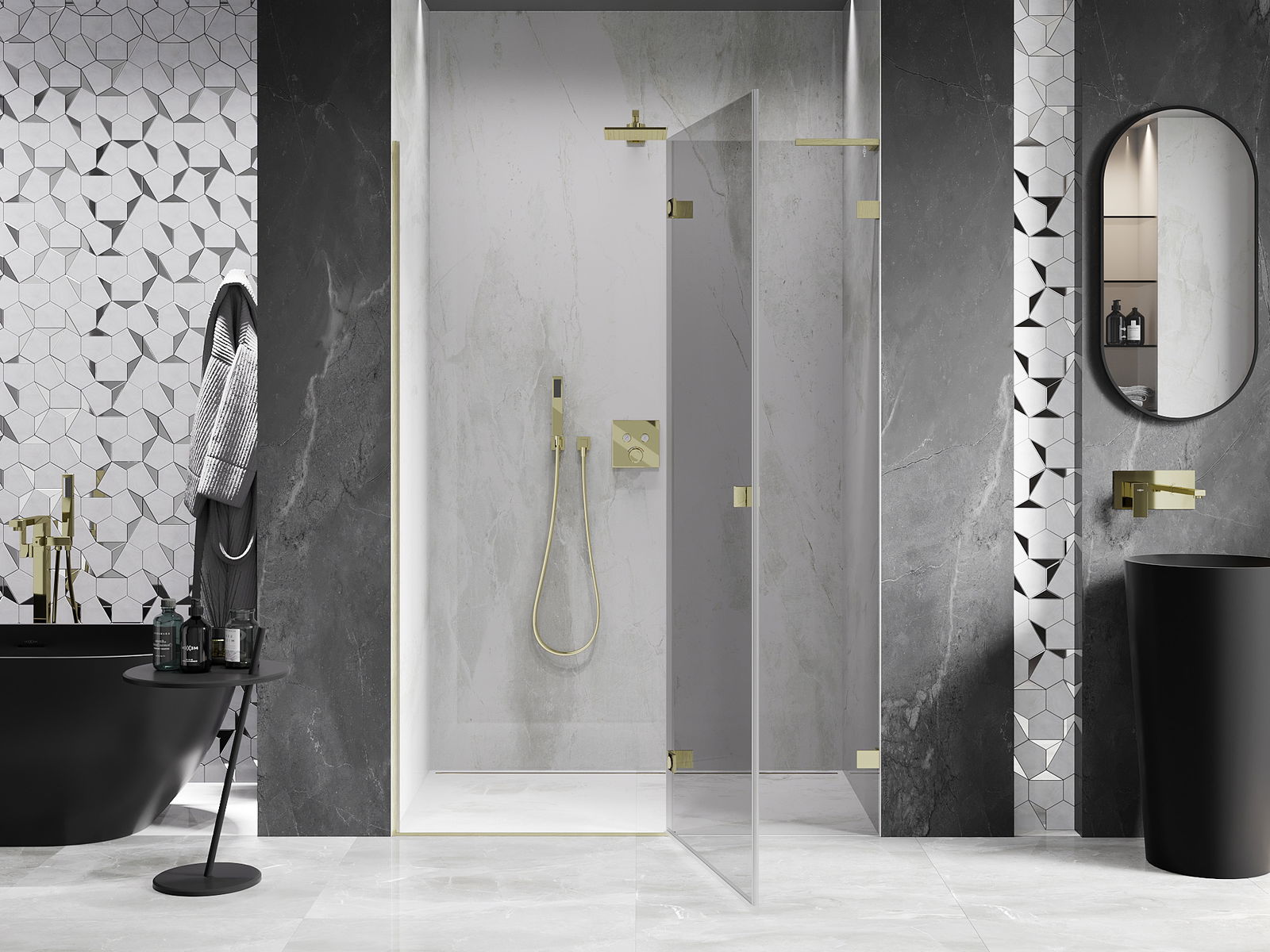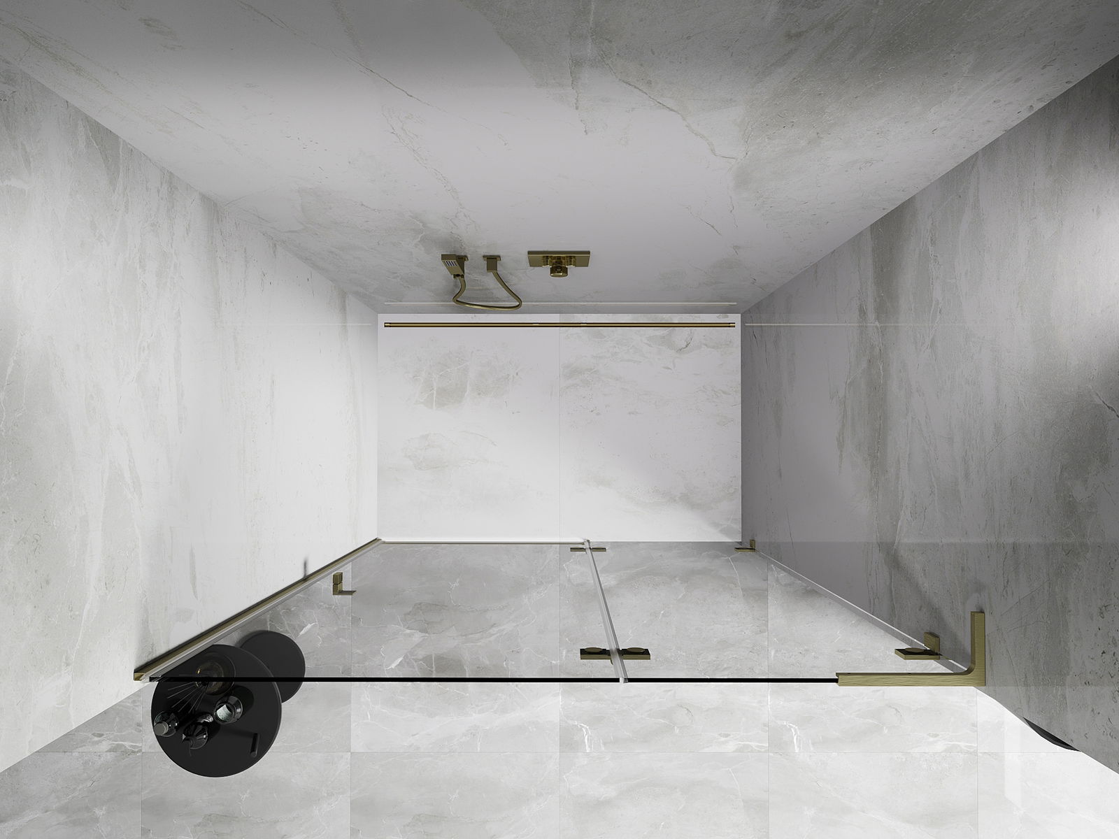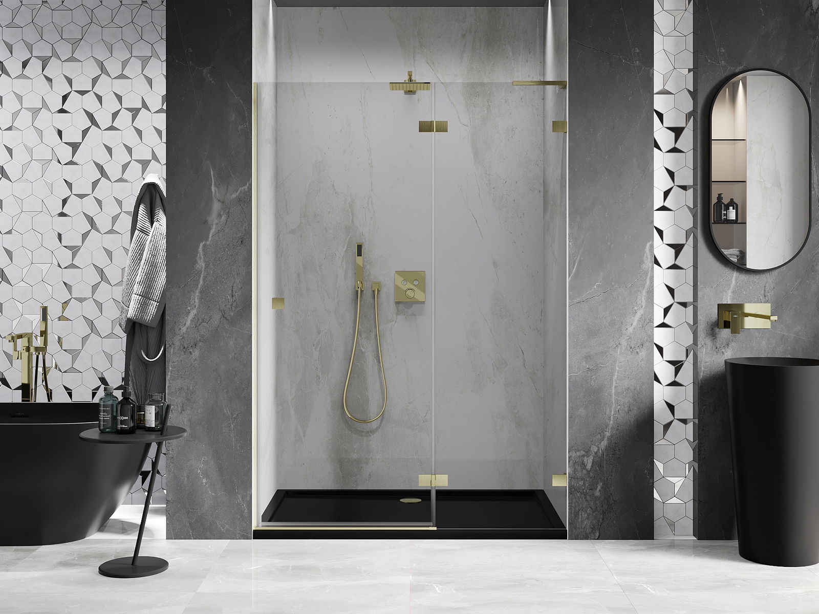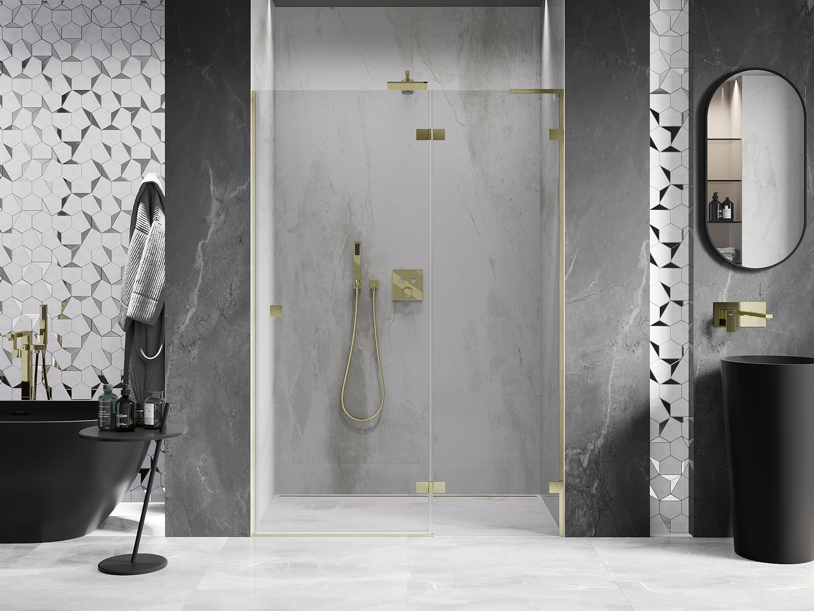 Mexen Lunar L ușile de duș rabatabile dreapta 140 cm, transparente, aurii periate - 834L-140-000-55-00-P